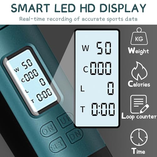 📊【Clear Digital LCD Display】The built-in HD LCD backlit screen clearly shows workout data including jump count, time, calories burned and weight setting, allowing you to monitor progress and adjust your training plan more effectively.