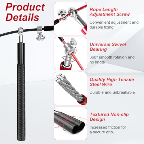 【Easily Adjustable Length】The skipping rope is 3m / 9.8ft long, and You can freely adjust speed skipping rope to a suitable length to meet the jumping rope needs of adults or children. The length of the rope can be adjusted by loosening and tightening the screw, suitable for home, in the gym or outdoors use.
