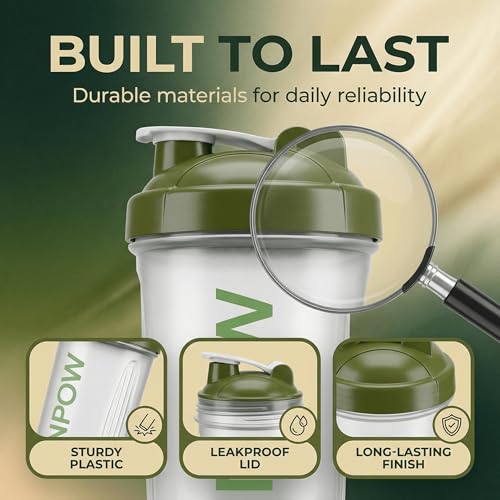 RELIABLE SHAKER FOR DAILY HYDRATION: The NPOW shake bottle blends your drinks while doubling as a solid protein powder shaker bottle or drink bottle. Excellent for mixing a protein shake mixer, smoothie, or energy drink. Whether using it as a sport bottle, mixer bottle, or protein powder bottle, itâ€s built to support your day. Ideal for anyone needing a dependable gym shaker or practical protein shakers bottles in one shaker cup.