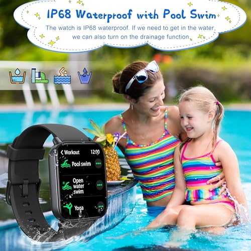 KALINCO Kids Smart Watch, IP68 Waterproof Swimming Smartwatch, 1.8” Fitness Activity Tracker Watch with 100 Sports Modes, Make Call/Answer, HR & Sleep Monitor, Alarm for 7+ Boys Girls Teens