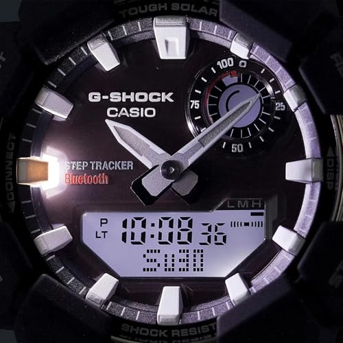 Introducing a solar-powered watch that tracks and digitally displays your steps without the need for external charging. The analog-digital GA-B010 features a bold case and a large, easy-to-read display, enhanced by refined finishes including a vapor-deposited bezel ring, a sunray dial, and metallic accents on the inset dial. Designed for durability with elevated detailing, this timepiece runs solely on solar power while counting steps and presenting activity data on the digital screen. Via Bluetooth®, it connects seamlessly to a smartphone, allowing full access to features through the CASIO WATCHES app, including automatic time correction and simple life-log management. Additional functions such as world time and a stopwatch add everyday practicality, while a high-brightness LED light—activated by a prominent front button—ensures visibility at any time. Phosphorescent hands and indexes complete the design, offering clear legibility even in low-light conditions.