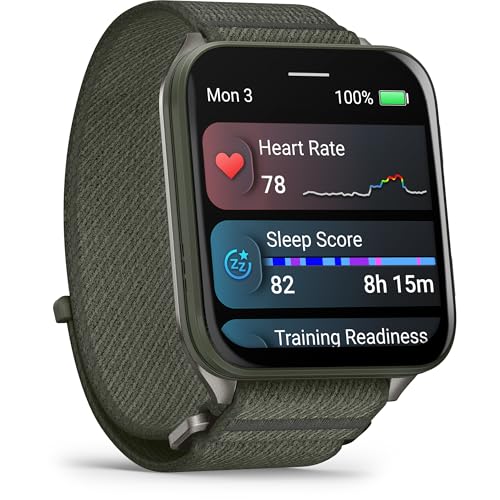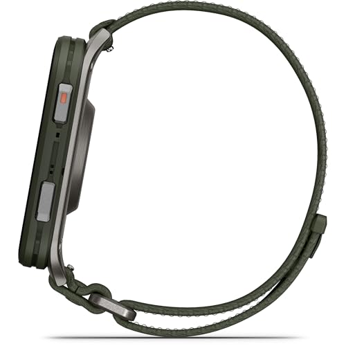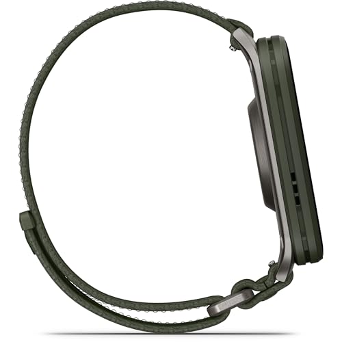 Garmin Venu X1 51mm GPS smartwatch, Large 2″ AMOLED display, LED flashlight, Lightweight, Ultra thin 8mm watch case, 100 pre loaded Sports Apps, Up to 8 days battery life, ComfortFit nylon band, Moss