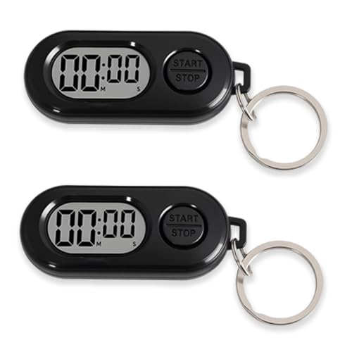 2PCS Keychains Stop Watch, Stop Timer Keychain, Mini Small Stopwatch for Clip On Keys Lanyard Backpack, Portable Sports LCD Screen Digital Stopwatches Key Chain Clock, Precise Countdown Accessories