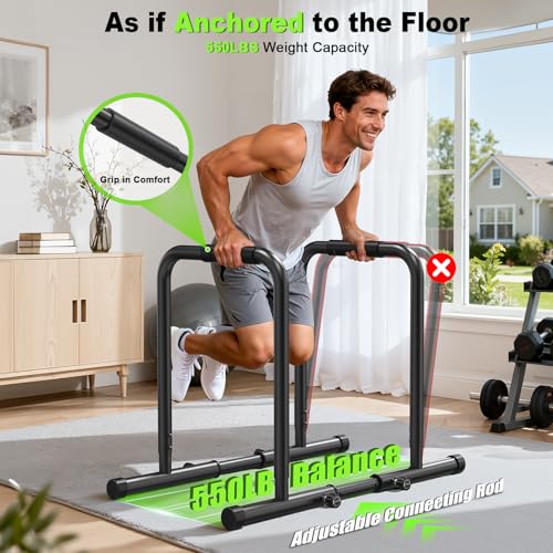 Dskeuzeew Adjustable Dip Bars, 550LBS/250KG Weight Capacity, Heavy Duty Dip Stand Parallettes for Calisthenics, Home Gym & Commercial Use