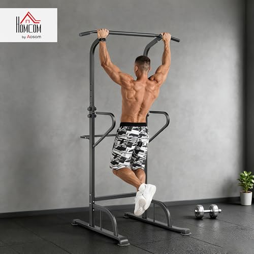 HOMCOM Power Tower Dip Station Pull Up Bar Multi-Function Push Up Equipment with Adjustable Height for Home Gym Strength Training Workout Fitness