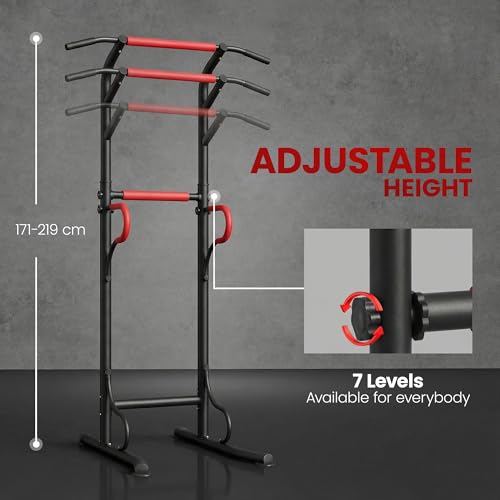 ADJUSTABLE HEIGHT: Seven different positions to fix to a level which is right and safe for you. This dip station is suitable for use between friends and family members of different heights.