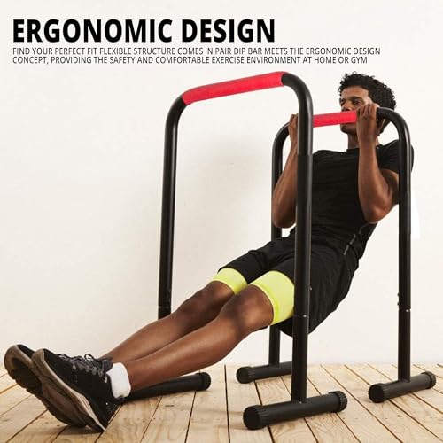 Heavy Duty Construction Pair of our exercise dip bars for home training Rack is made of grade tube made of with non-slip feet with Rubberised, non-slip high-density handles: approx. 45 cm wide that can hold upto 120 Kg securely and safely.