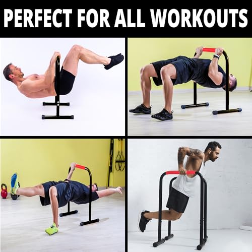 MAXSTRENGTH Multifunctional Dip Station Heavy Duty Dip Stands Fitness Bar with Connector Dip bar Station Stabilizer Parallette Push Up Stand Workout Equalizer for Calisthenics