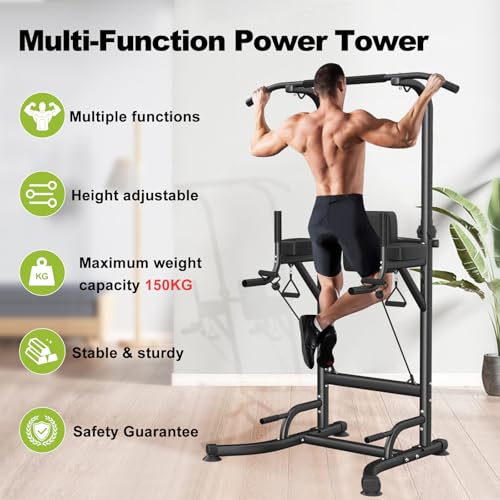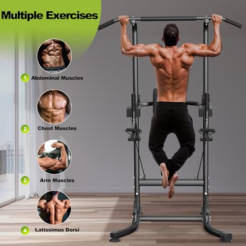 Pull Up & Dip Station, Adjustable Height Multi-Function Power Tower for Home Gym Strength Training Fitness Workout Equipment