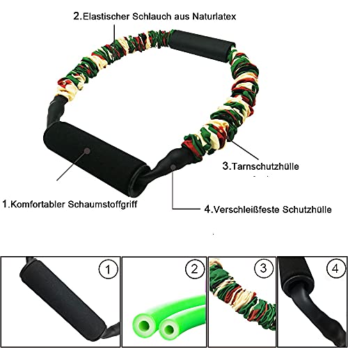 Material: Latex tension tube, camouflage protective sleeve, foam handle, wear-resistant sheath.