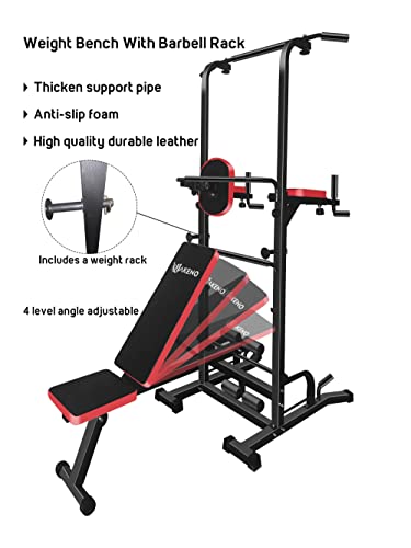 Multifunction Power Tower with Bench Pull Up Bar Dip Station for Home Gym Squat Rack Adjustable Workout Strength Training Home Fitness Equipment 440LB