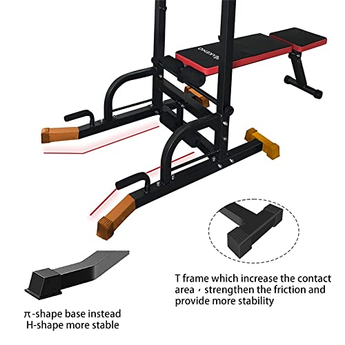 💪【Sturdy Construction】- This Power Tower is made of high quality steel frame constructed with scratch-resistant coat finish and holds up to 550 LBS. Combined with crossbars reinforcement, this dip station becomes more firm, allowing for more challenging workouts.