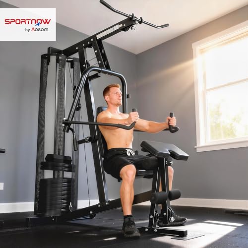 SPORTNOW Multi Gym, All in One Home Gym Machine with Adjustable Seat and Back, 45kg Weight Stack, Lat Pull Down, Chest Press, Leg Extension, Bicep Curl for Full Body Strength Training
