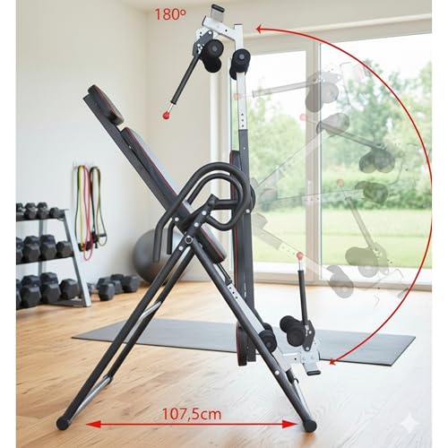 YATEK Gravity Inversion Table ECO, Heavy Duty Inversion Table foldable with total inversion, supports a weight of 150kg and a height of 2 meters, also has adjustable headrest