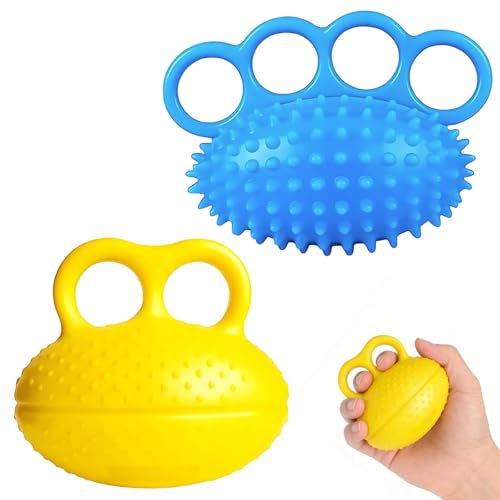 2 Pcs Finger Exercise Stress Balls, Hand Grips Strengthener Squeeze Ball Hand Grip Strengthener, Grip Strength Training Device That Enhances Hand Exercises and Relieves Stress(Yellow and Blue)