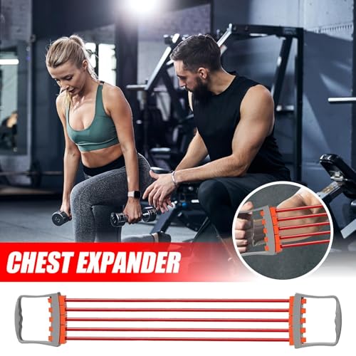 Chest Expander,Stretch Bands Arm Exerciser 5 Spring Adjustable Chest Expander – Arm Workout Device, Elastic Ropes, Ergonomic Exercise Equipment for Women, Men