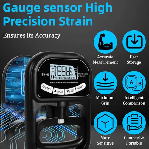 🟢【Accurate Measurement and High-Performance Sensor】SUPRBIRD digital handheld dynamometer has an accuracy of 0.1kg and a capacity of 180KG. The high-precision strain gauge in the grip strength measurement device provides instant digital values, whether it is used for physical therapy device applications, hand strength training devices or as a sports grip strength tester. Perfect for sports coaches