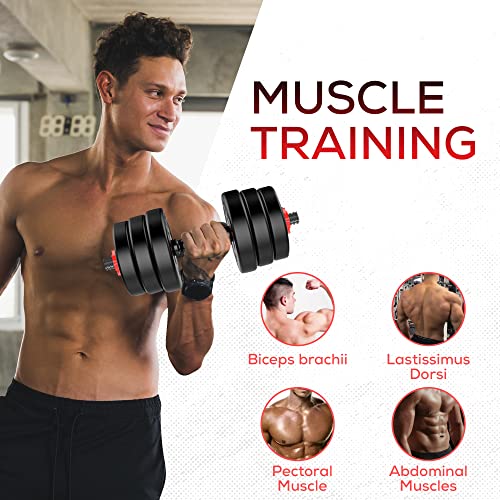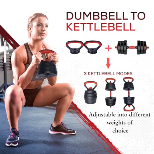 【6 IN 1 DUMBBELL SET BARBELL SET KETTLEBELL SET 】Adjustable Dumbbells Set is convertible for multiple usage in the form of Dumbbell Barbell and Kettlebell Set in your everyday fitness needs of body building, stamina training and and your designed fitness aims.