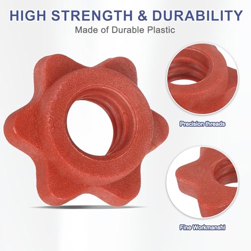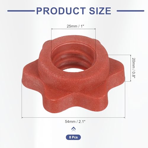 Dumbbell Collars, Barbell Spin Lock Hex Nuts Anti Slip Weight Lifting Clip 1″ & 8 Pack & Plastic & Red – Fitting for (1″ Standard Barbell – Dumbbell)