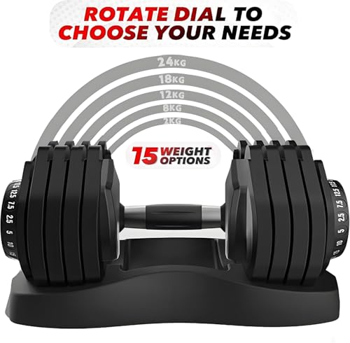 💪【One dumbbell, 15 different weights】 The innovative HAKENO adjustable smart dumbbell will save you both space and money, covering 15 weights between 2.5-24kg. 2.5kg, 3.5kg, 4.5kg, 5.5kg, 6.5kg,8kg, 9kg, 10kg, 11.5kg, 13.5kg, 16kg, 18kg, 20.5kg, 22.5kg and 24kg.