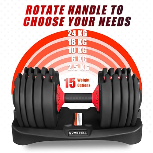 💪【15 in1 Adjustable Dumbbells】You will receive a pair of 24kg dumbbells, each adjustable in 15 different weights: 2.5kg, 3.5kg, 4.5kg, 5.5kg, 6.5kg,8kg, 9kg, 10kg, 11.5kg, 13.5kg, 16kg, 18kg, 20.5kg, 22.5kg and 24kg., a set for a full body workout at home! .Include 2 Dumbbells + 2 hand Grip Strengthener.