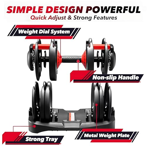 💪【Double auto-locking design】Double safety locks, anti-fall design, must be rotated on the base to adjust the weight, automatically lock when lifting the dumbbells, exercise is more secure, lifting over the head is not afraid of
