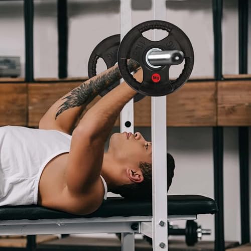 Space-Efficient 23.5cm Design: With a slim 4cm profile, these Olympic plates save space in home gyms while providing proper resistance. The black rubber coating prevents rust and maintains aesthetics.