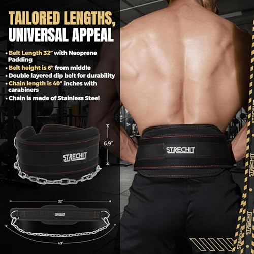 Dip Belt with 36″ Steel Chain for Pull-Ups & Dips, Weighted lifting belt with Neoprene Padding, Heavy-Duty Carabiners, Durable for Strength & Fitness Workouts