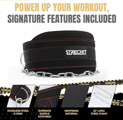 Take your workouts to the next level with our Dip Belt with Chain, designed for athletes, weightlifters, and fitness enthusiasts who want to push past bodyweight limits and build greater strength. Whether you’re training for power, endurance, or muscle growth, this dip belt is the perfect companion for your pull ups, dips, and weighted exercises. Crafted with premium quality materials, this 32-inch belt is reinforced with neoprene padding that provides both durability and comfort. Unlike traditional belts that dig into your sides, the padded design cushions your lower back and waist, letting you focus entirely on your form and performance. The heavy-duty steel chain and strong carabiners allow for quick and secure attachment of weight plates, kettlebells, or other resistance tools, supporting loads of up to 350 lbs with ease. The thoughtful design makes this belt versatile for multiple exercises. Use it for weighted pull ups to build back and arm strength, add resistance to dips for improved chest and triceps development, or incorporate it into squats and lunges to enhance lower body training. Its secure fit and durable build make it suitable for both beginners looking to challenge themselves and advanced lifters who demand reliable gear. Compact and lightweight, the belt easily fits into your gym bag, so you can bring it along to every workout. Whether at the gym, home training setup, or outdoor workout space, this dip belt delivers dependable support every time. Upgrade your training gear with a belt that combines strength, comfort, and performance – the essential accessory for anyone serious about their fitness journey.