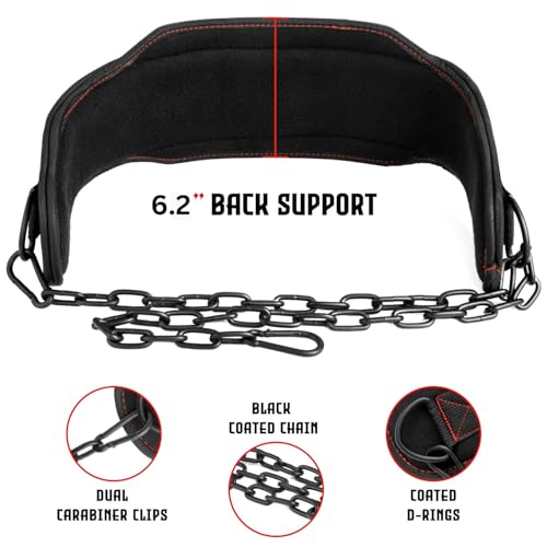 EVO Fitness Dip Belt Heavy Duty 36 Inch Adjustable Chain Weight Lifting Belt 6.2″ Back Support Lifting Belt Dipping Belt Chin Pull Ups Men Women Bodybuilding Powerlifting Workout Gym Training Neoprene