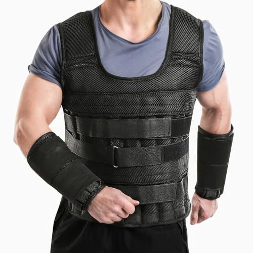 Adjustable Weighted Training Vest Man 12.8KG, 42 x 55 cm, Black Exercise Vest with Iron Weights for Running, Workout, Slim Design Weighted Running Vest
