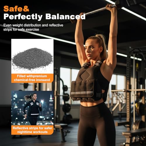 【Comfortable, Adjustable Fit】 Achieve a custom, secure fit with fully adjustable shoulder and side straps. The padded shoulders and contoured design prevent chafing and ensure the weight is comfortably distributed, making this weighted vest for women ideal for extended wear during progressive strength training or long weighted walks.