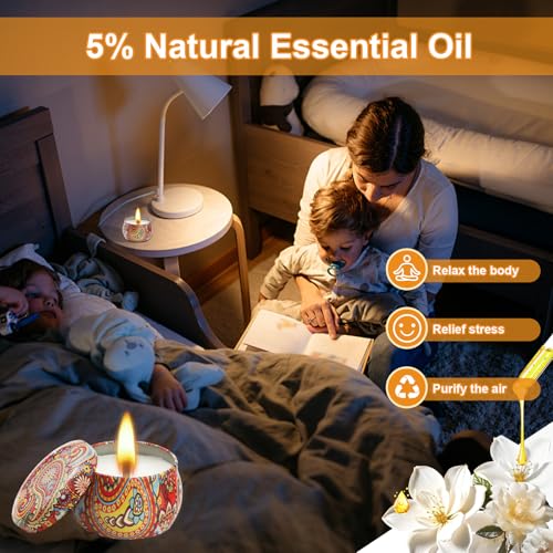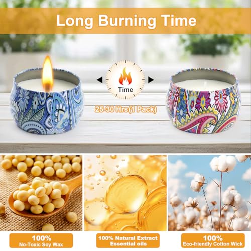 🌱【100% Natural Soy Wax Formula】The scented candles are made with 100% premium soy wax and 8% high-concentration plant-based essential oils, paired with lead-free cotton wicks. They burn slowly and evenly, lasting 20% longer than ordinary candles. No black smoke or residue, offering you a purer fragrance experience.