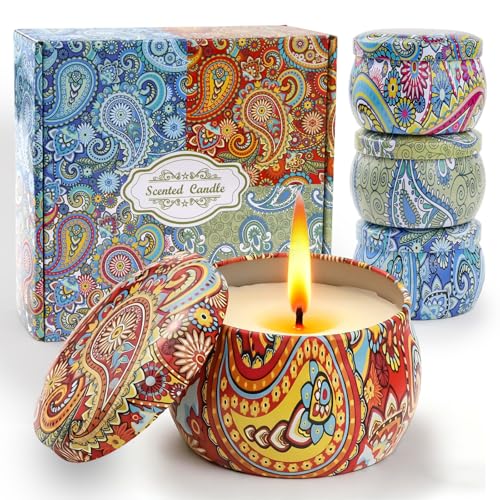 Christmas Candles Gifts Set for Women, 4 Pack 4.4OZ Scented Candles, Long Burning 120 Hours Aromatherapy Soy Candle for Meditation, Yoga, Bath, SPA, Stocking Stuffers Gifts for Mom, Wife, Grandma