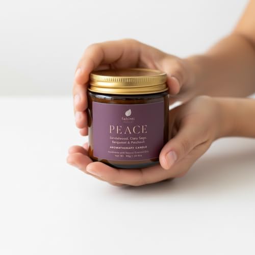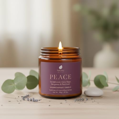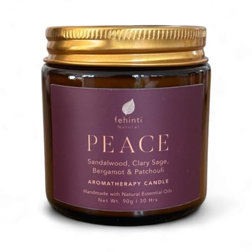 Fehinti Natural Sandalwood, Clary Sage, Bergamot, Patchouli Aromatherapy Peace Candle Handcrafted with Natural Essential Oils and Soy Wax | 90g | 30 Hours