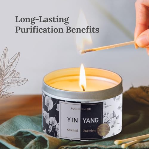 MAGNIFICENT 101 Yin Yang Smudge Candle for House Energy Cleansing, Banishes Negative Energy I Orchid Jasmine Scented Natural Soybean Wax Tin Candle