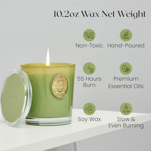 M&SENSE 290g Soy Scented Candles Eucalyptus Sage – 55 Hours Long Burning, Natural Non-Toxic Glass Jar Candle, Aromatherapy for Relaxing, Luxury Birthday/Mother’s Day Gifts for Women
