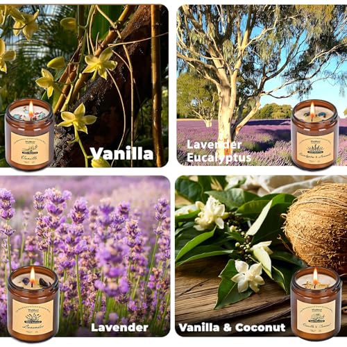 Scented Candles Set, 4 Pack Aromatherapy Candle with Crystals, 28 oz 160 Hour Long Lasting Candle, Soy Wax Scented Candle with Dried Flowers, Gifts for Men, Women, Birthday, Mother’s Day