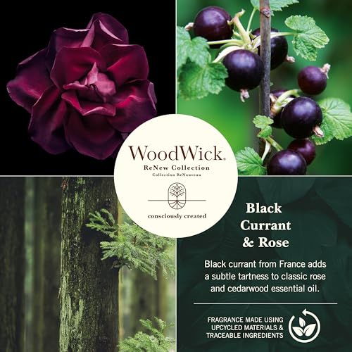 WoodWick Renew Scented Candle with Crackling Wick | Black Currant & Rose Medium Candle | Plant Based Soy Coconut Wax Blend | Made with Recycled Materials | Perfect Gifts for Women