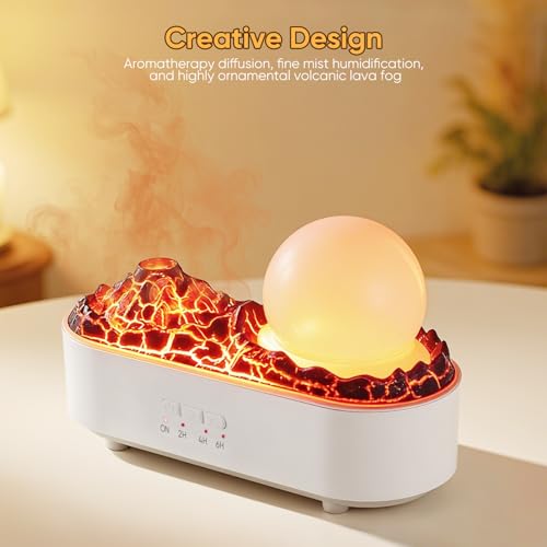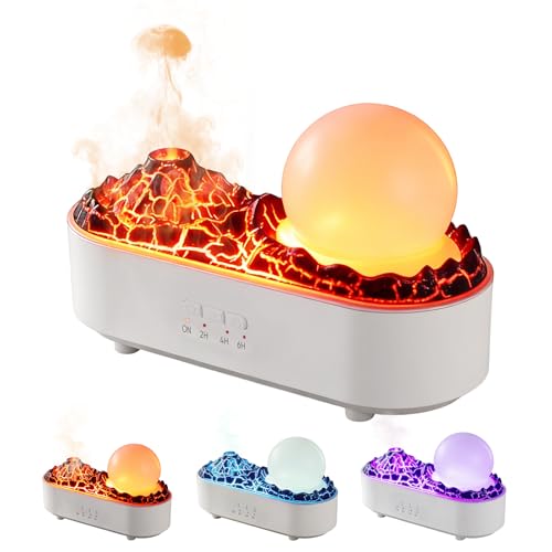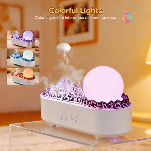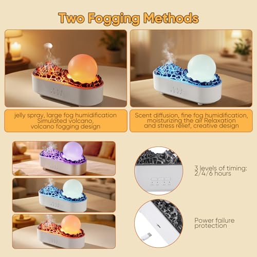 Simulated Volcano & Mood Lighting: The unique Simulated Volcano design emits a fine mist, complemented by three adjustable light modes (flame, ice blue, purple flame). You can use the light alone as a charming atmosphere night light to create a warm and romantic ambiance in any room.