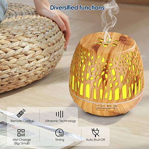 Simpeak 400ml Essential Oil Diffuser, BPA Free Electric Aroma Diffuser with Remote Control & Auto Shut-Off, Aromatherapy Humidifier with Variable Color LED Light & 3 Timing Mode