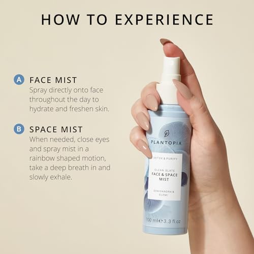 Plantopia Refreshing Face Mist & Room Spray – Soothing Elemi & Schisandra – Aromatherapy Essential Oil Blend – Multi-Use Face & Room Mist Spray – Vegan Cruelty Free, 100ml