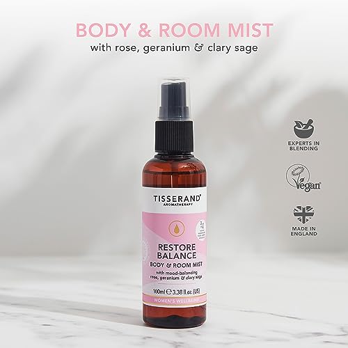 Tisserand – Restore Balance Body & Room Mist – Perimenopause, Menopause & Menstruation Support for Women – Rose, Clary Sage & Geranium 100% Natural Essential Oils – 100 ml