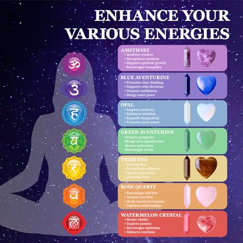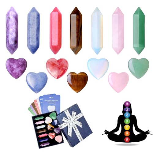 【Chakra Gemstones】Healing Crystals collection includes 7 Pocket chakra set and 7 heart Stones+7 Double Point Wand Polished Tumbled Stones. High quality smooth and ease, powerful energy and enhancing meditation, help the physical and mental healing