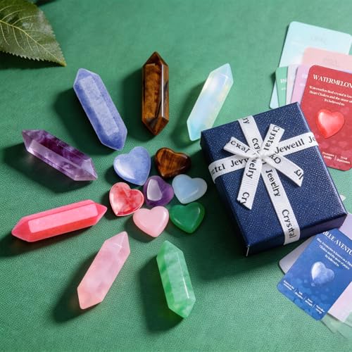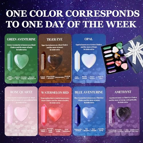 14Pcs Healing Crystals Kit Gifts, Heart Stones for Beginnners, 7 Chakra Crystals and Gemstones Set for A Week, Yoga Amulet Meditation Stone with Instruction & Gift Box, Galentines Mother Day Gift
