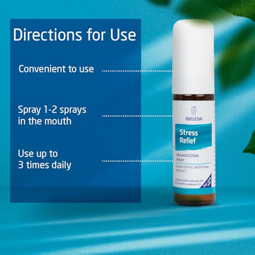 Homeopathic medicinal product used within the homeopathic tradition for the temporary relief of mild stress, irritability and tension. An oral spray with biodynamic chamomile and pulsatilla. Weleda Stress Relief Oromucosal Spray is a homeopathic medicinal product used within the homeopathic tradition for the temporary relief of mild stress, irritability and tension.