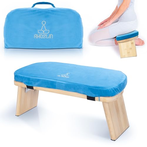 Meditation Bench Foldable Ergonomic Bamboo Meditation Stool Chair Sturdy Prayer Bench Yoga Stool Floor Sitting Kneeling Stool with Cushion,Suit for Meditations,Yoga,Prayer (Blue)