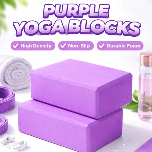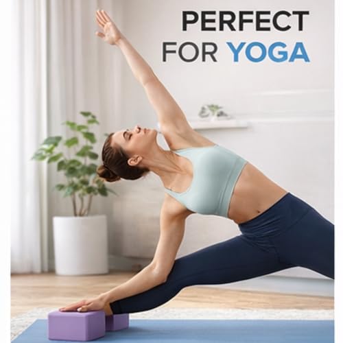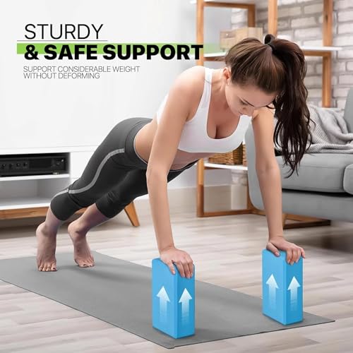 2 Pack Yoga Blocks – Non-Slip EVA Foam Bricks for Pilates Fitness & Yoga Practice | High Density Lightweight Gym Blocks for Stretching Balance, Flexibility & Support