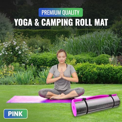 1ABOVE Yoga & Camping Roll Mat – Waterproof Insulated Roll Up Foam Camp Mattress with Elasticated Straps, Lightweight & Durable Ideal for Camping, Fishing, Festival & Exercise (180x50x06cm)