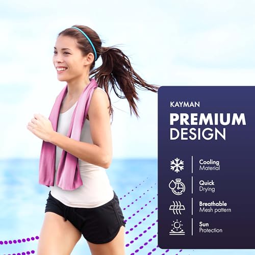 KAYMAN Cooling Gym Towel – Light Blue (2 Pack – 120x35cm), Soft & Breathable Microfibre Towel, Quick Dry Yoga, Cooling for Neck & Face, Sport for Golf, Running, Hiking & Workout
